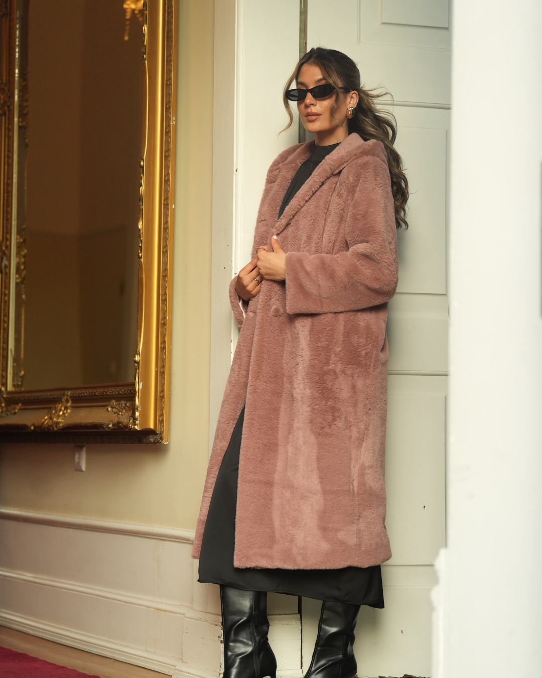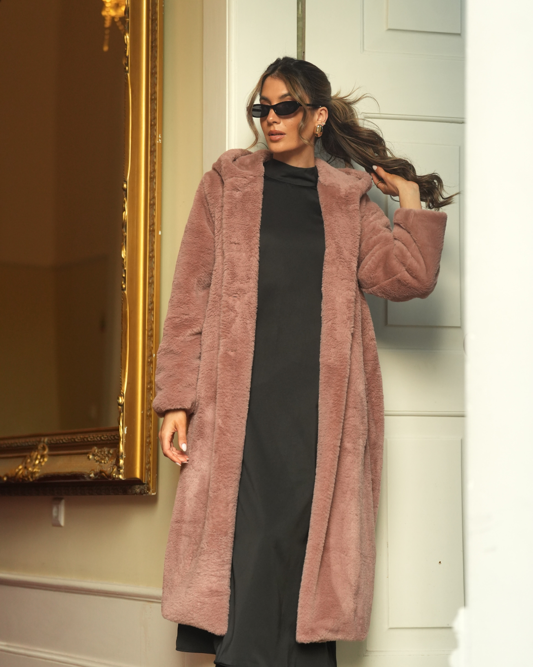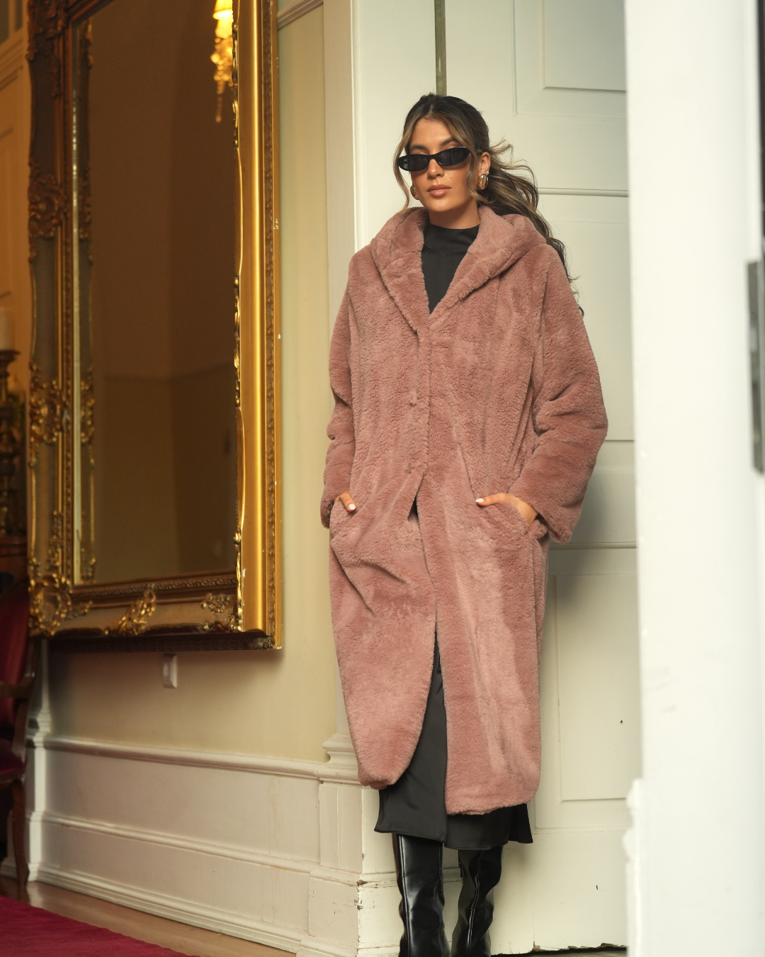 O primeiro sobretudo de pêlo sintético com capuz t-sHEART, concebido em tecido de pelúcia com um toque suave, que nem dá vontade de o tirar depois. Fitting fluido. Bolsos laterais invisíveis forrados em tecido acetinado sublimado com logótipo. Esta peça apresenta forro em tecido acetinado com logótipo sublimado exclusivo e aperta com 4 botões redondos forrados ao tecido principal.