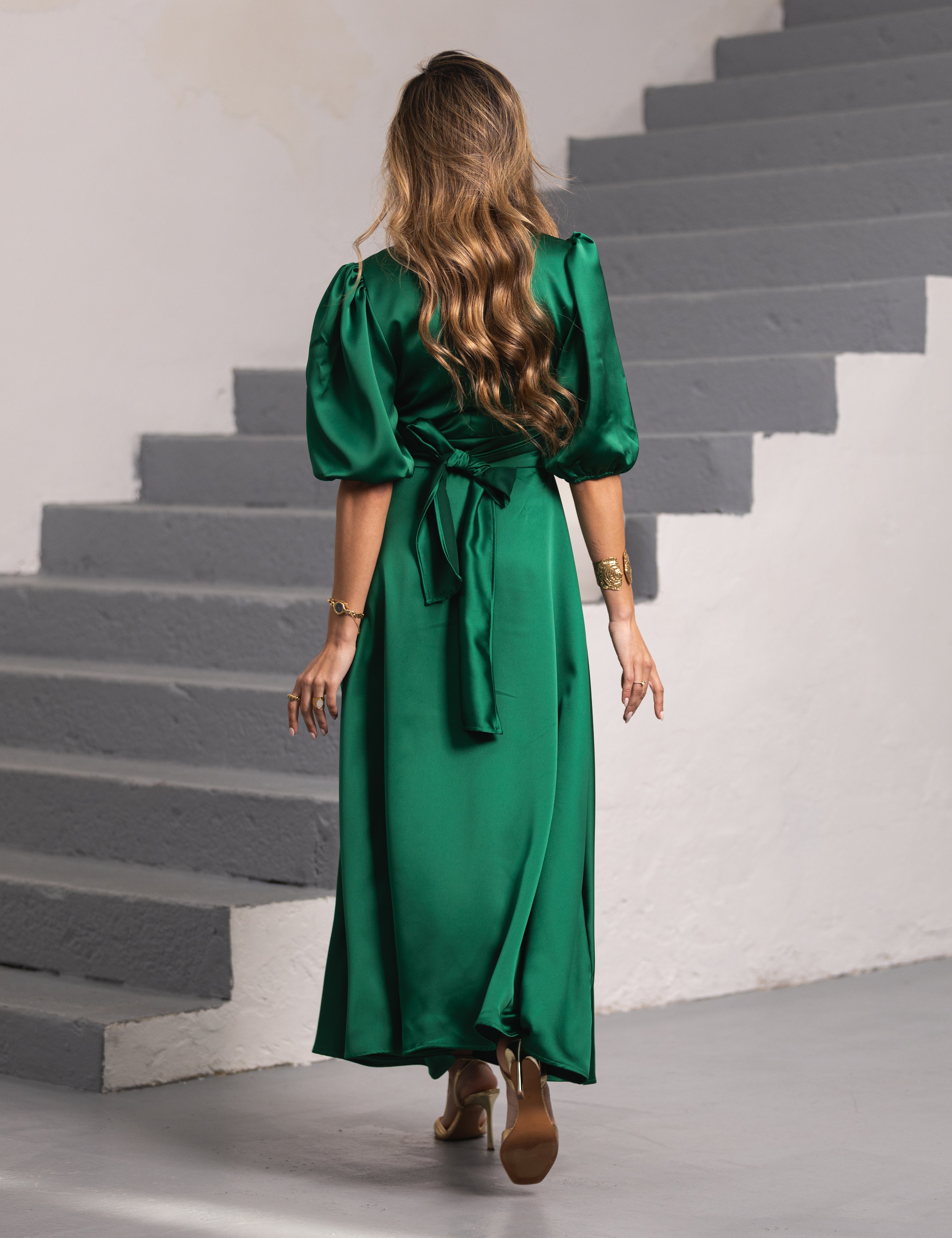 FÉNIX SATIN DRESS RUBY GREEN