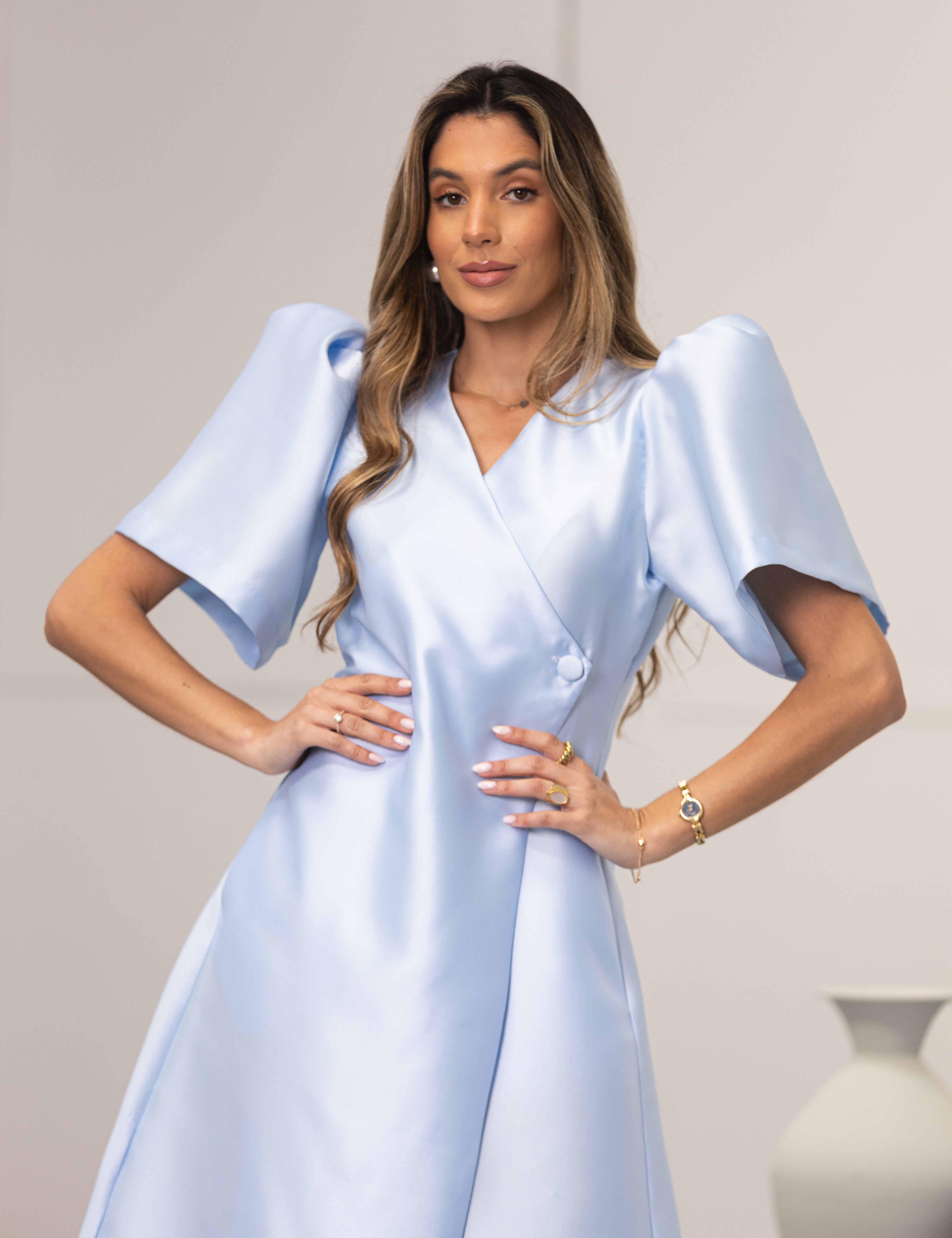 FÉNIX SATIN DRESS SKY BLUE