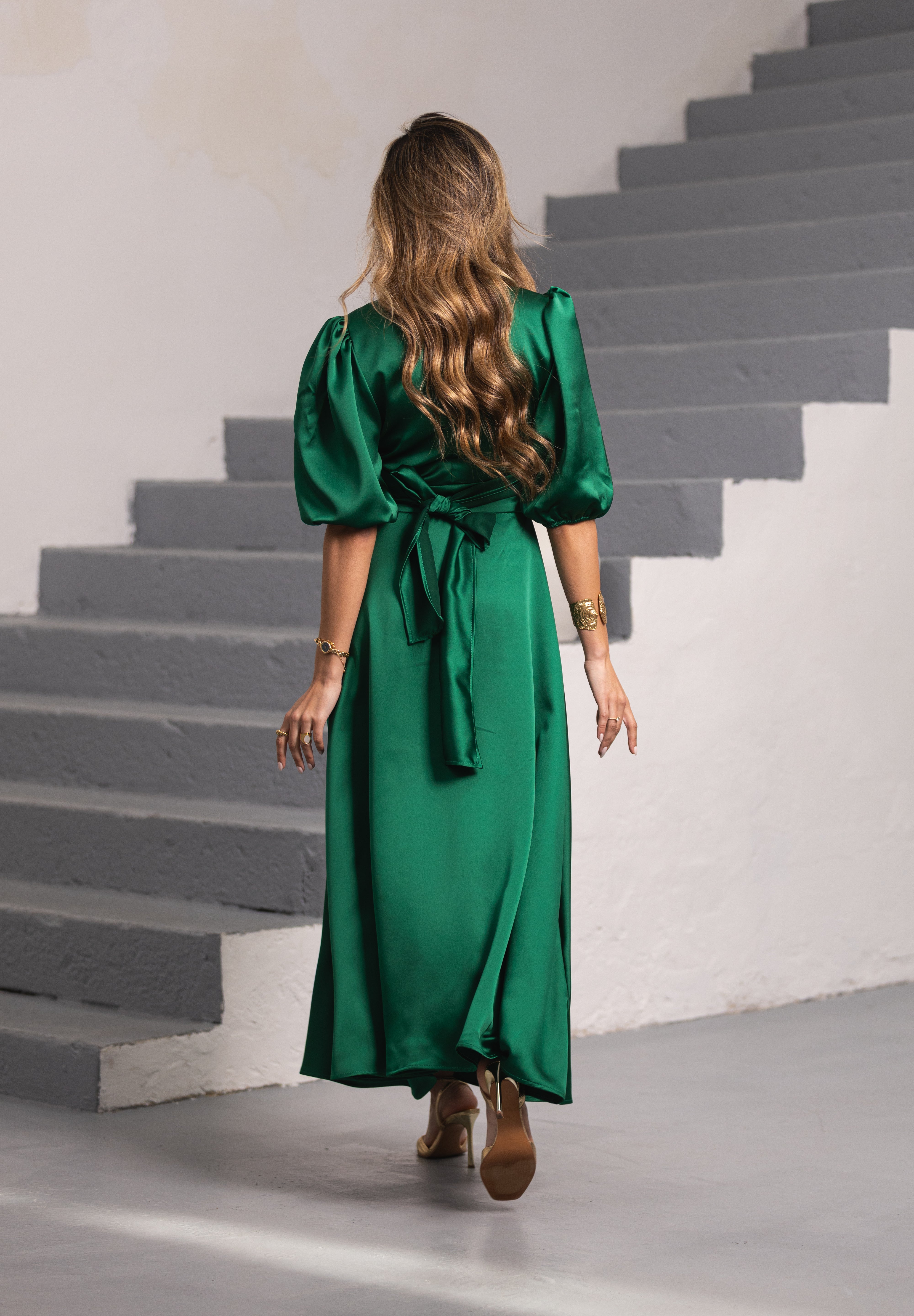 FÉNIX SATIN DRESS RUBY GREEN