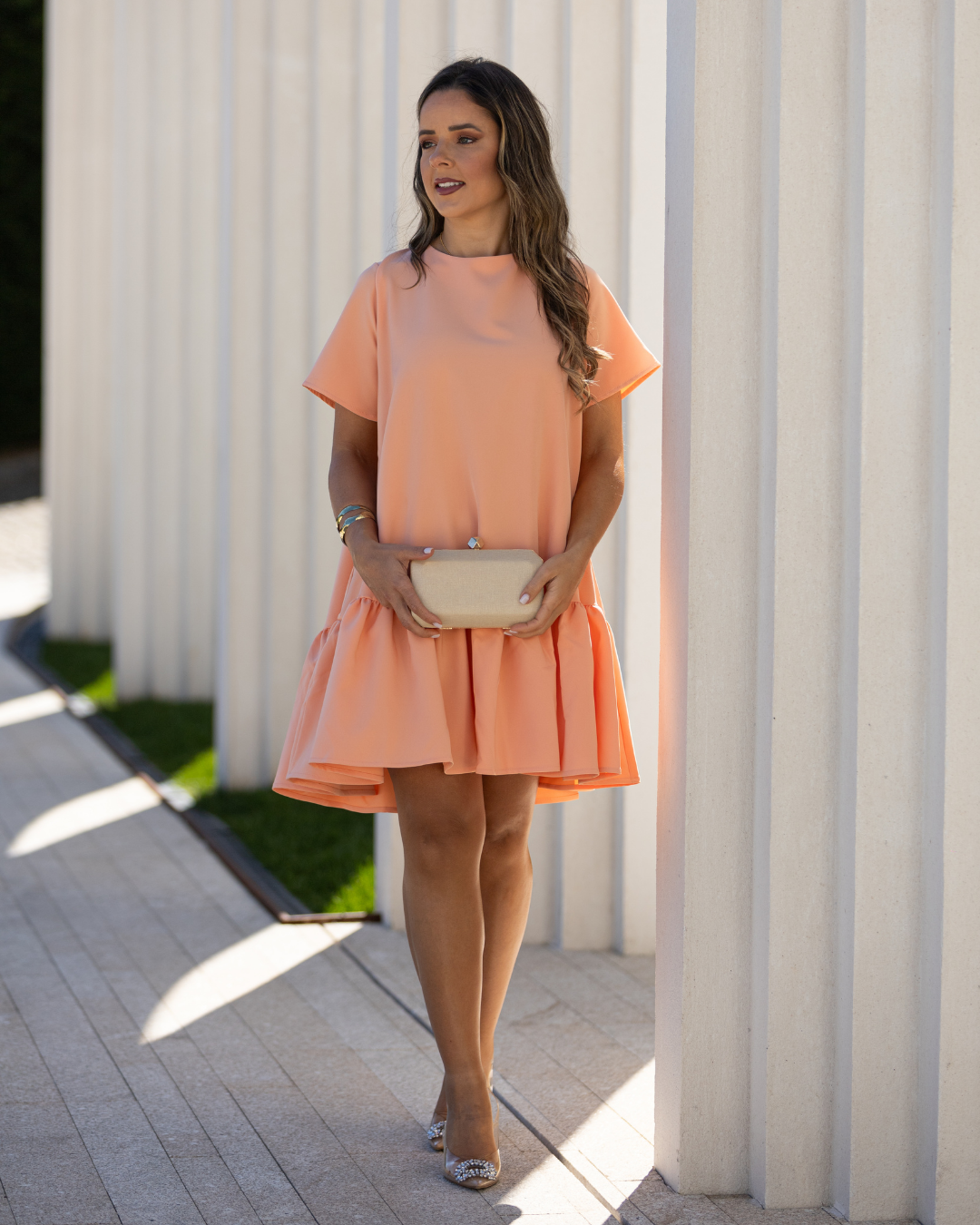 Perfeito para cerimónias, jantares, dia a dia.  Pode usar saltos altos para eventos mais formais, e pode criar um look mais casual com botas, tênis ou sandálias rasas. Modelo veste mais que o normal, por ser em formato A e de encaixe fluído para poder ajustar nas costas as fitas.