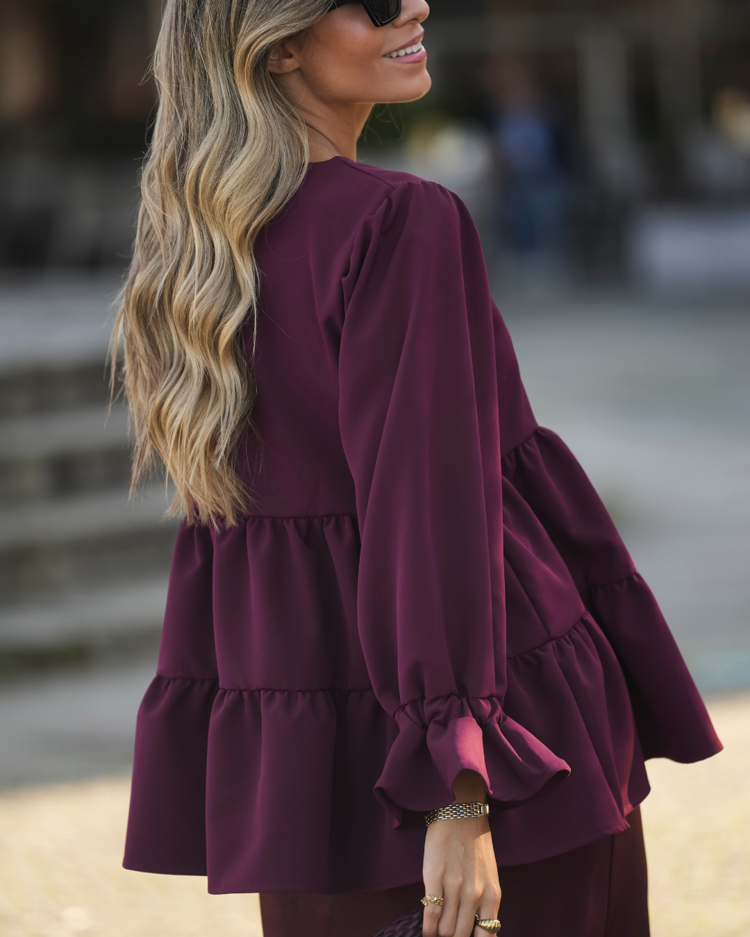 The best-selling ruffled blouse with over 2 meters of fabric now in a trendy color!
