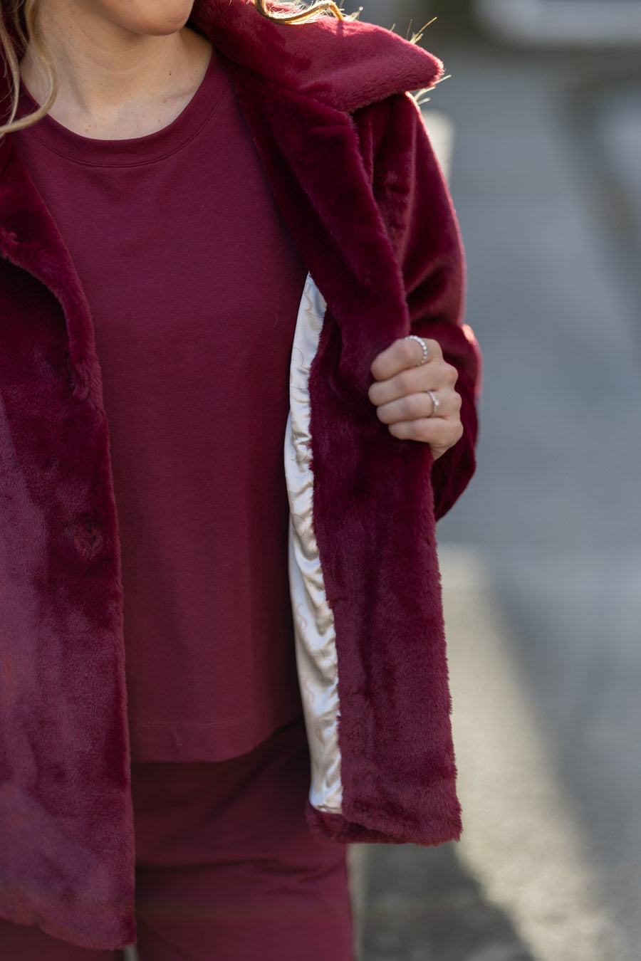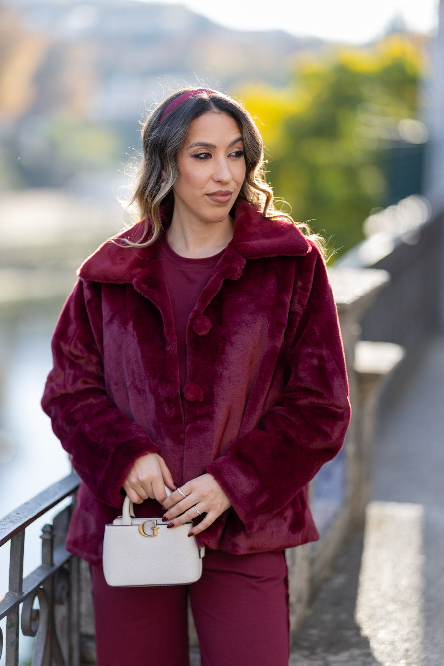 O primeiro casaco curto de pêlo sintético t-sHEART, concebido em tecido de pelúcia com um toque suave, que nem dá vontade de o tirar depois. Fitting fluido. Bolsos laterais invisíveis. Esta peça apresenta forro em tecido acetinado com logótipo sublimado exclusivo e aperta com botões redondos forrados ao tecido principal.