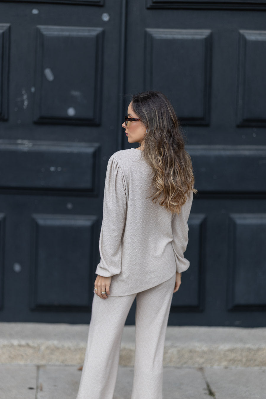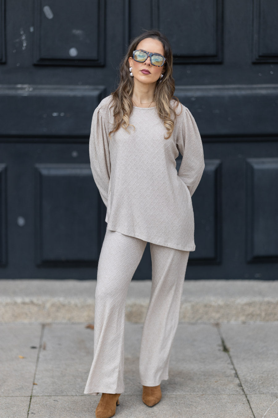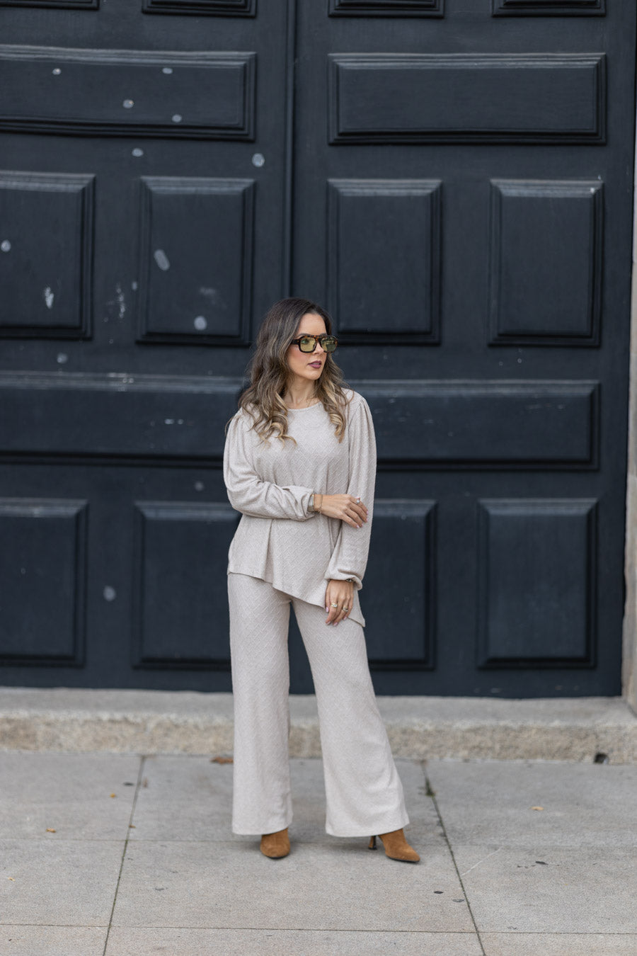 We created the CHIC SET so that you can be comfortable, warm and stylish on these cool days. In ribbed knit, it consists of high-waisted trousers with elastic for a perfect fit for different body types, where you can find our Trefoil logo embroidered on the left leg at the bottom of the trousers.