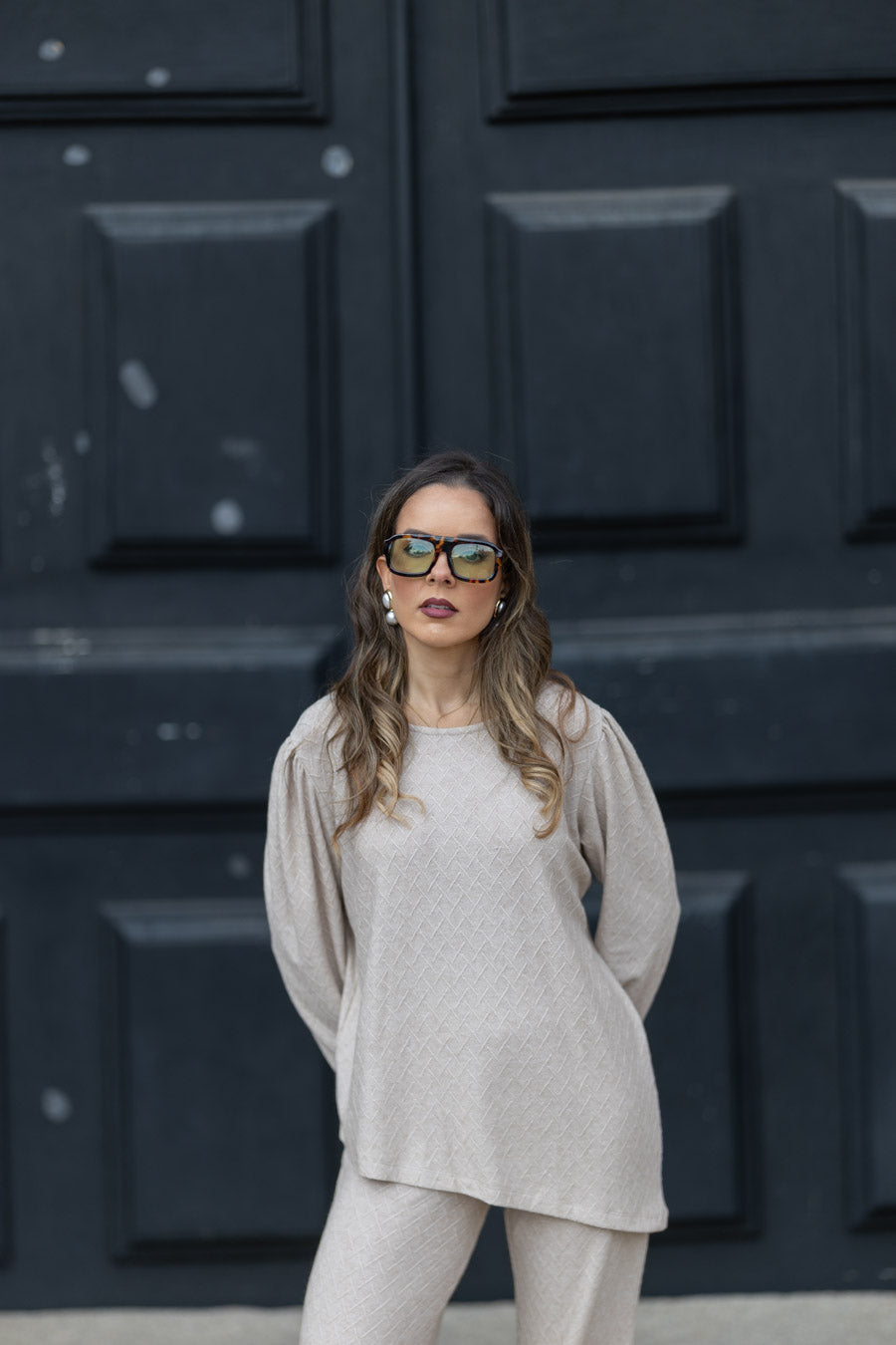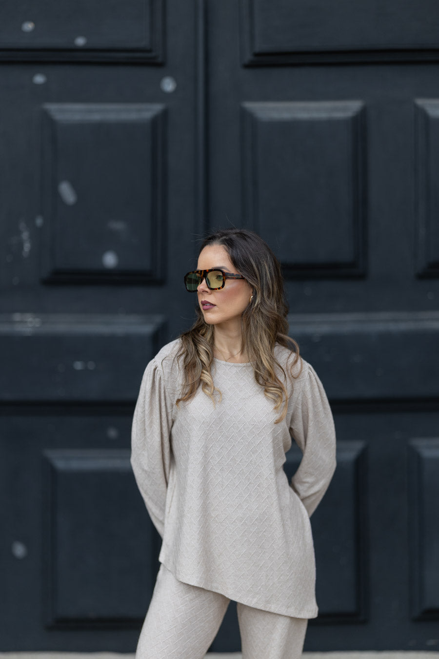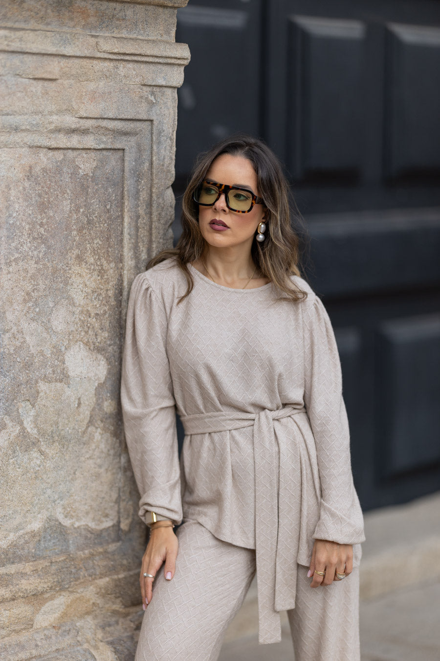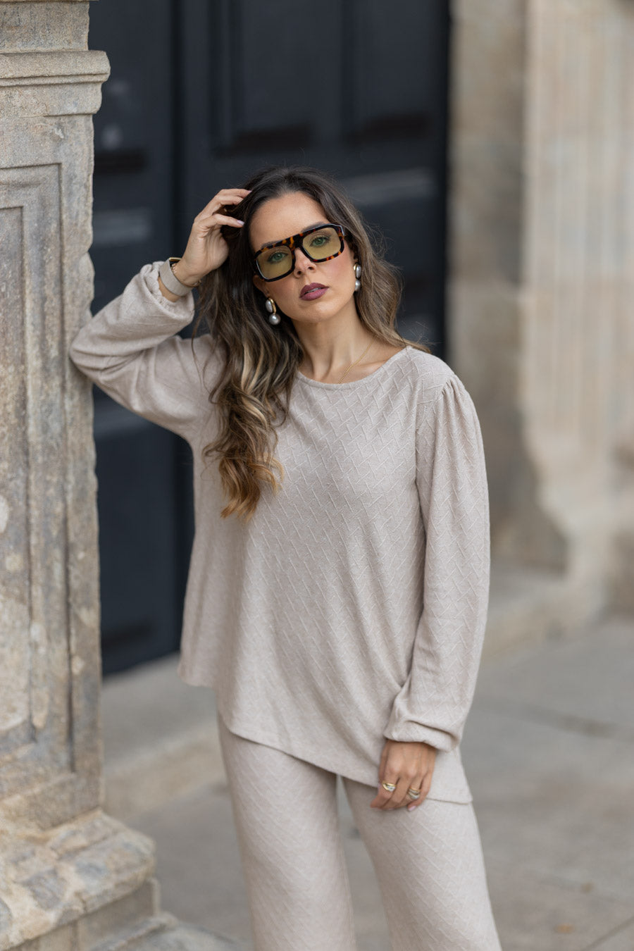We created the CHIC SET so that you can be comfortable, warm and stylish on these cool days. In ribbed knit, it consists of high-waisted trousers with elastic for a perfect fit for different body types, where you can find our Trefoil logo embroidered on the left leg at the bottom of the trousers.