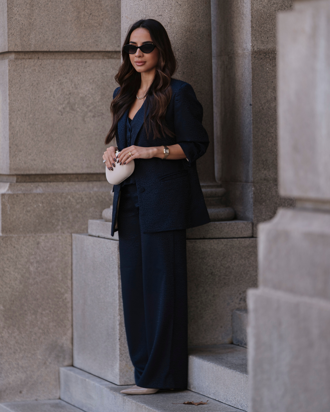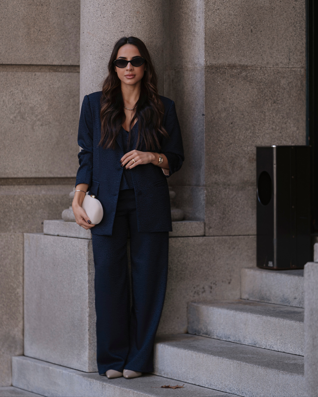 Pantalón sastre de tiro alto en tejido beige con efecto lurex (brillo dorado) con un ajuste perfecto que combina sofisticación y comodidad. Se abrocha con un botón invisible en el interior y otro botón redondo forrado en el exterior. Con bolsillos forrados en los laterales. Puedes combinarlo con el SHINE TOP & SHINE BLAZER para un look más clásico y elegante.