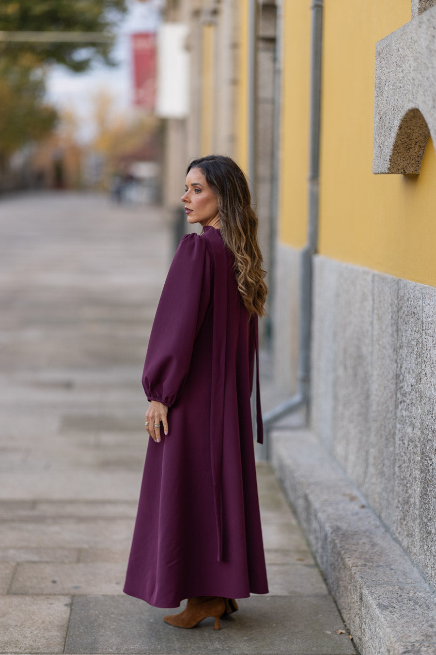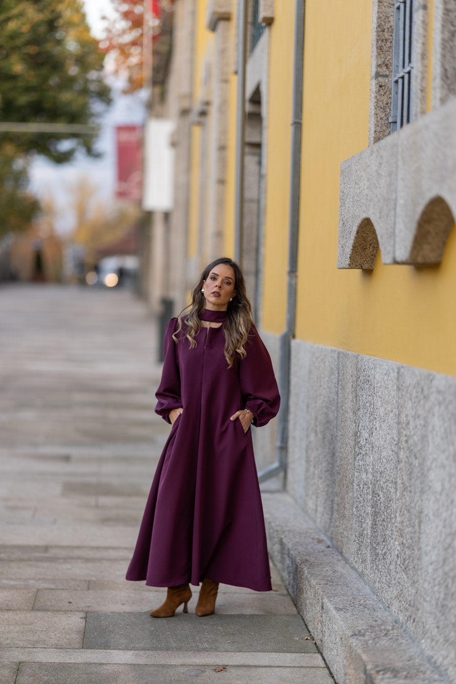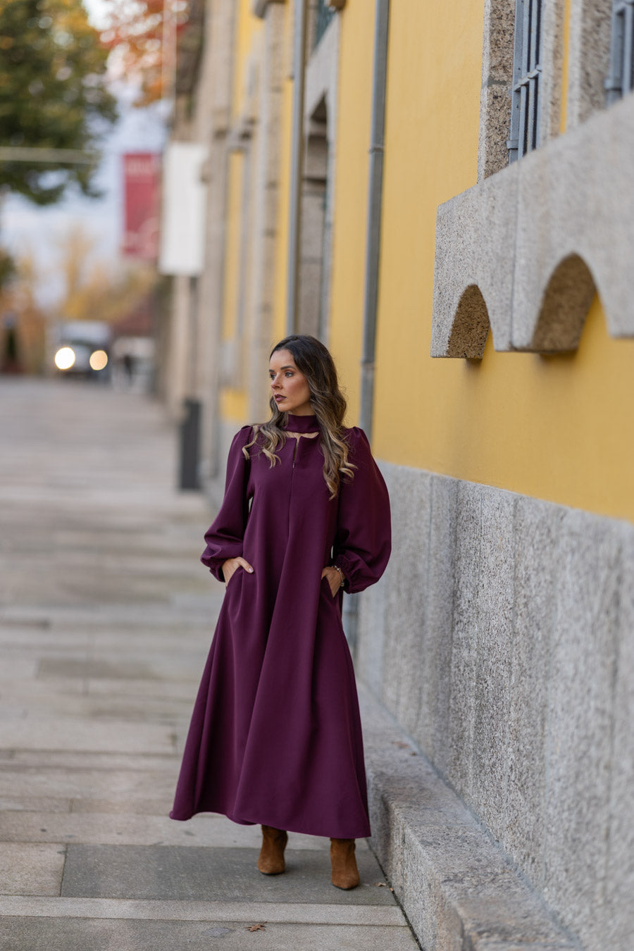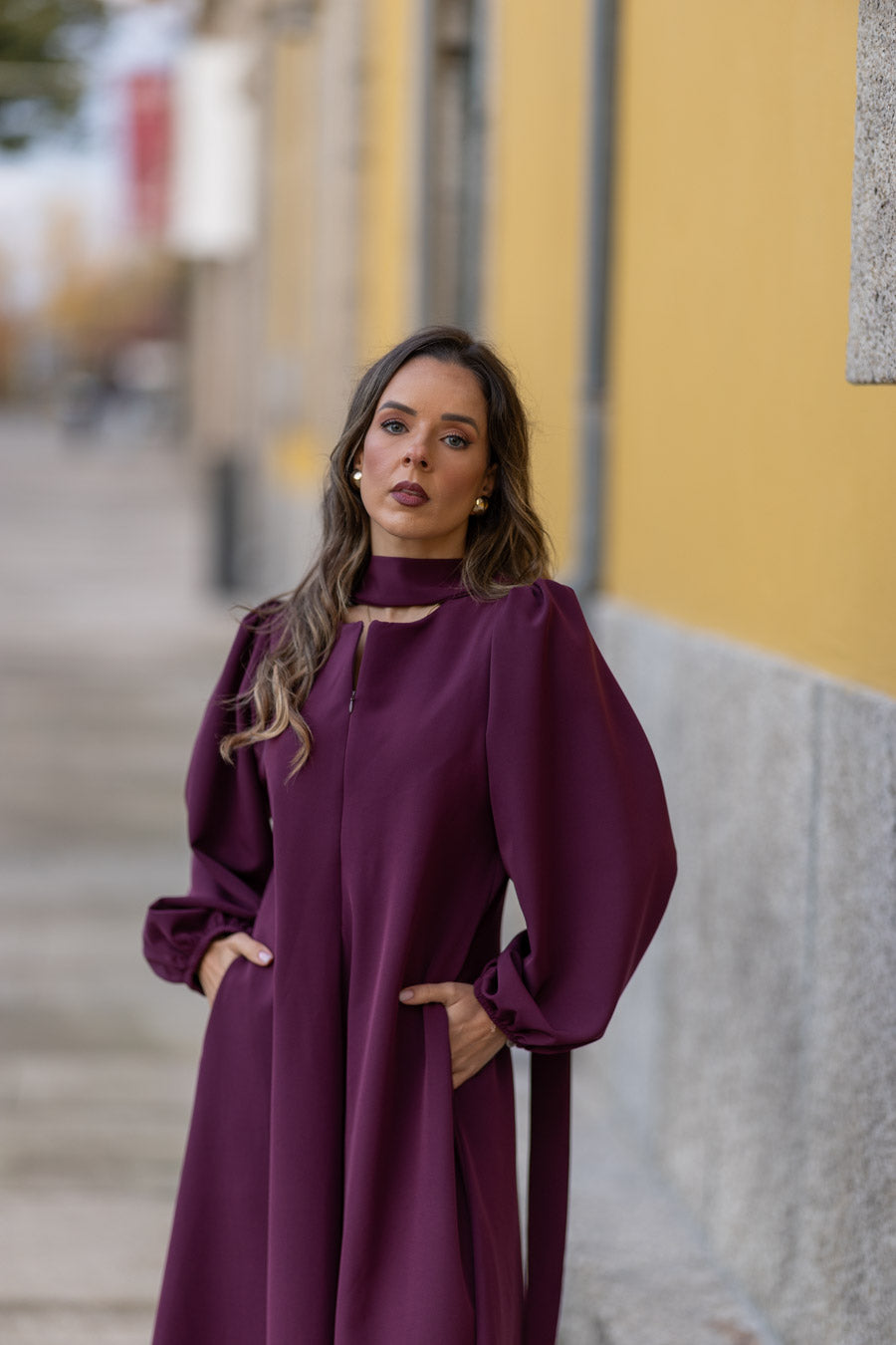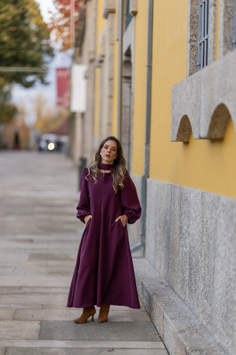 O modelo que tem sido um sucesso este ano, agora em edição inverno. Com cinto incluído que pode ser usado na cintura ou no pescoço como lenço. Mangas compridas abalonadas. Desde um look casual a um look mais formal para cerimónia este nosso novo vestido é perfeito.