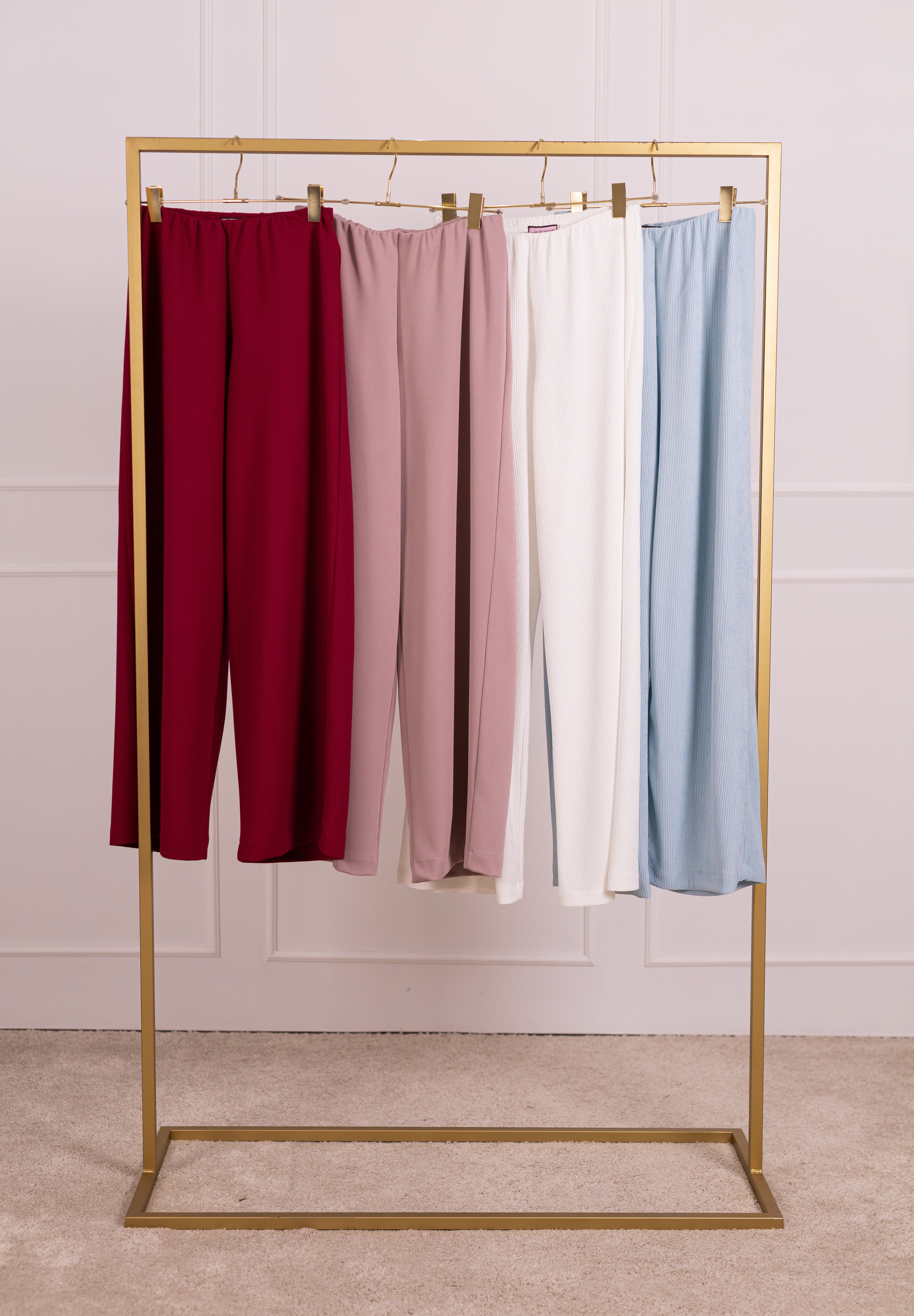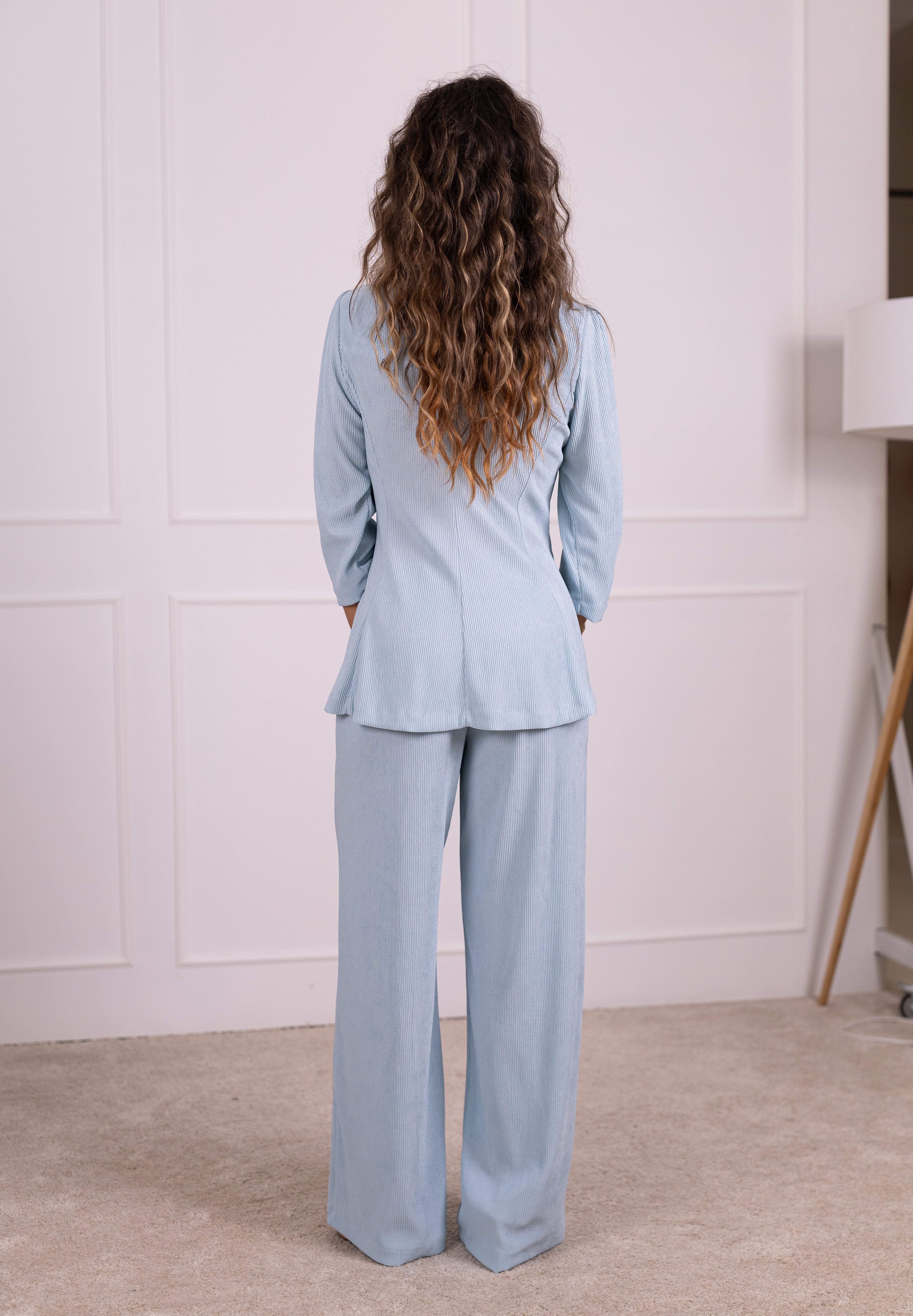 As nossas novas calças são confeccionadas em tecido plissado leve e solto, com um subtil brilho, que lhes confere sofisticação e leveza. De cintura subida, com elástico interior, adaptam-se confortavelmente a diferentes silhuetas, valorizando vários tipos de corpo.