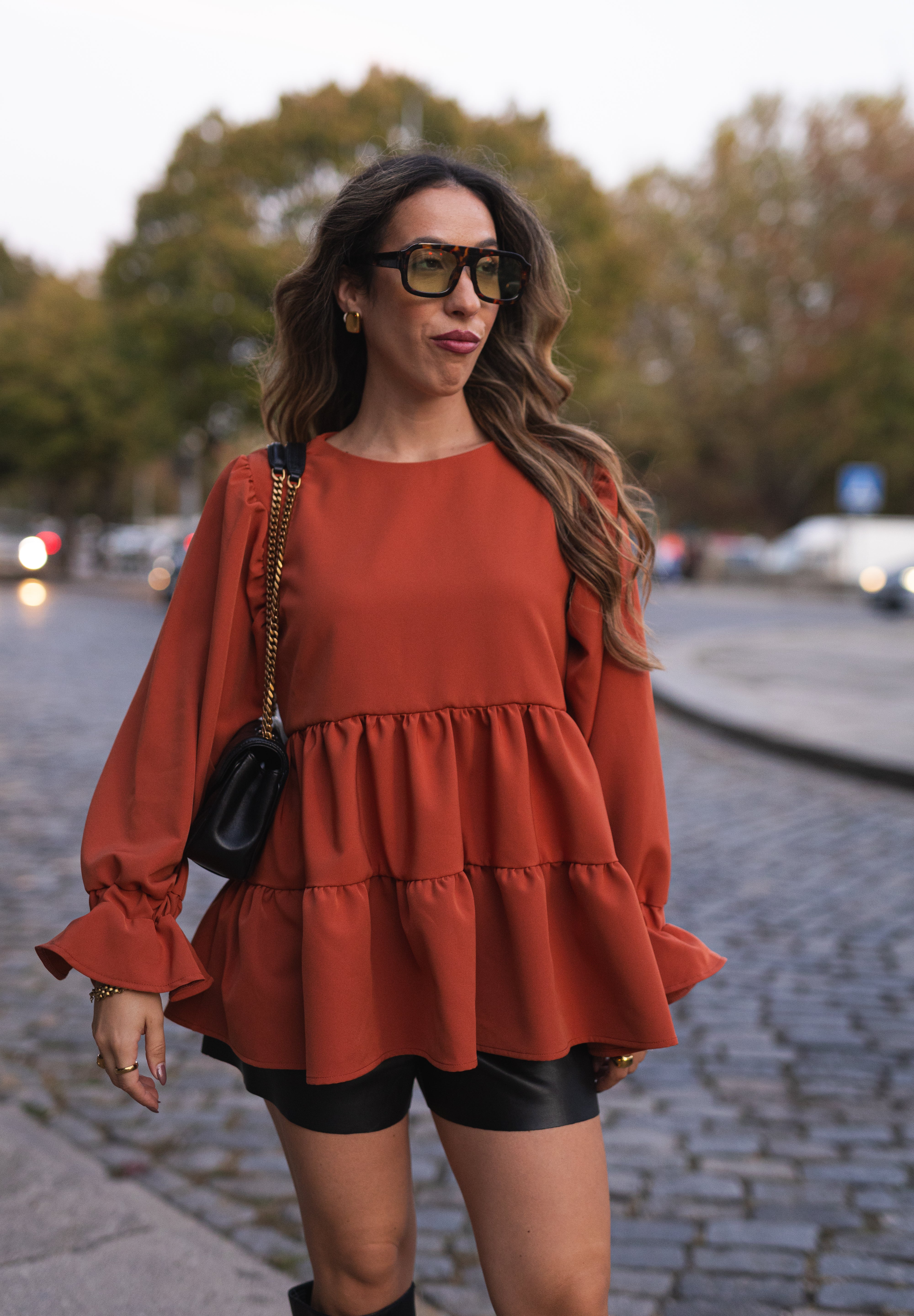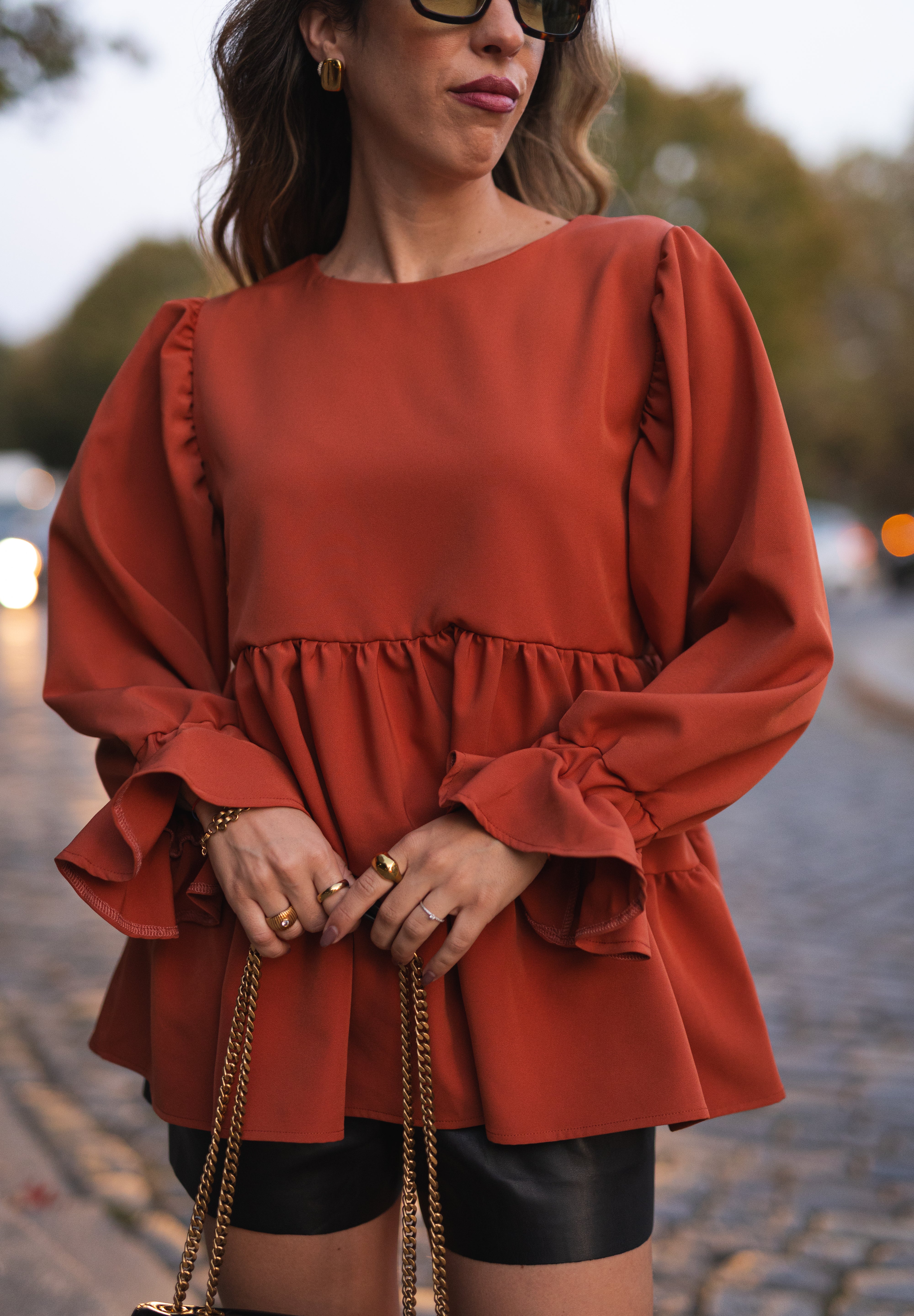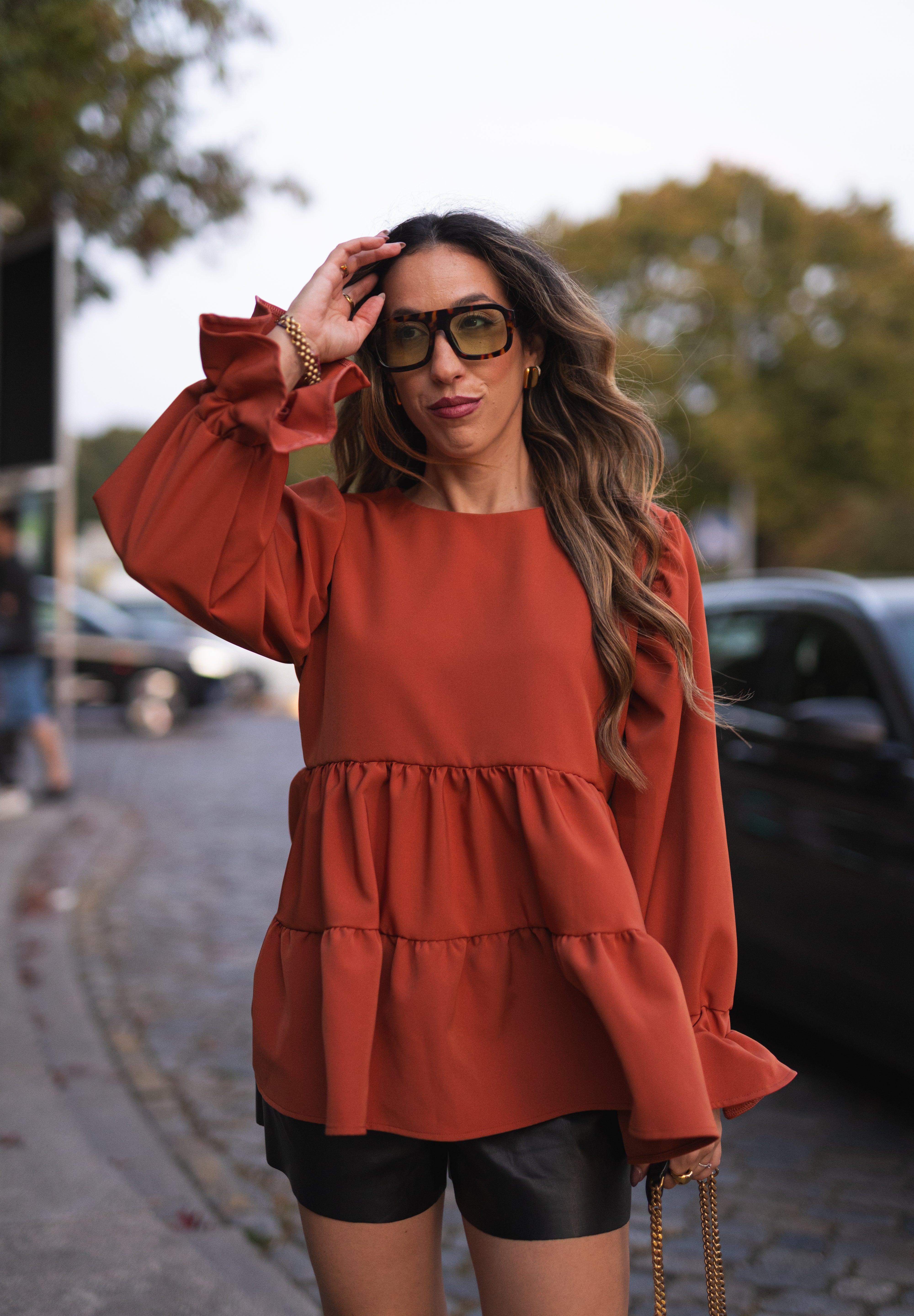 A blusa best-seller em folhos com mais de 2 metros de tecido está de volta e na cor clássica e atemporal. Decote redondo que aperta no cós com lágrima. Mangas abalonadas com punho franzido por elástico a terminar em folho, permitindo usar as mangas 3/4 ou compridas, concedendo-lhe uma versatilidade e intemporalidade únicas. Vai poder inspirar-se com a afirmação Be Love bordada em linha lurex dourada.