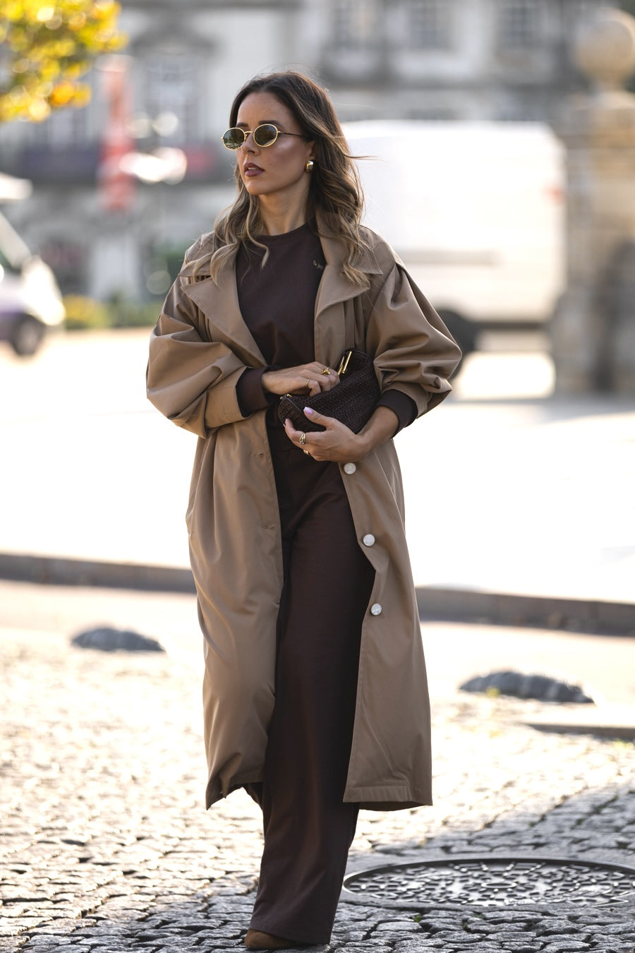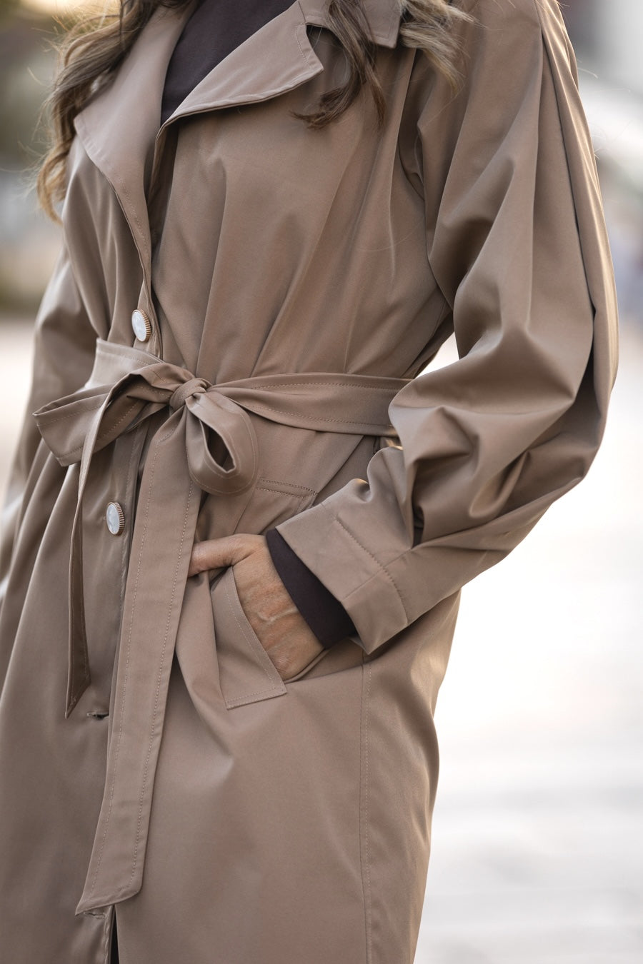 A Gabardine mais icónica e poderosa agora numa nova versão, ainda mais atemporal e única. Feita em tecido com repelência à água. Inclui cinto do mesmo tecido com presilhas. 4 botões premium redondos com efeito mármore e dourado no contorno. Mangas abalonadas e compridas com efeito de macho. Com bolsos dianteiros na cintura. Lapelas sobredimensionadas. Abertura nas costas com pequena racha. Toda forrada em tecido acetinado bege com o logótipo t-sHEART sublimado. Comprimento standard para vestir bem a várias alturas. Contém na gola interna a nossa nova etiqueta inspiracional.