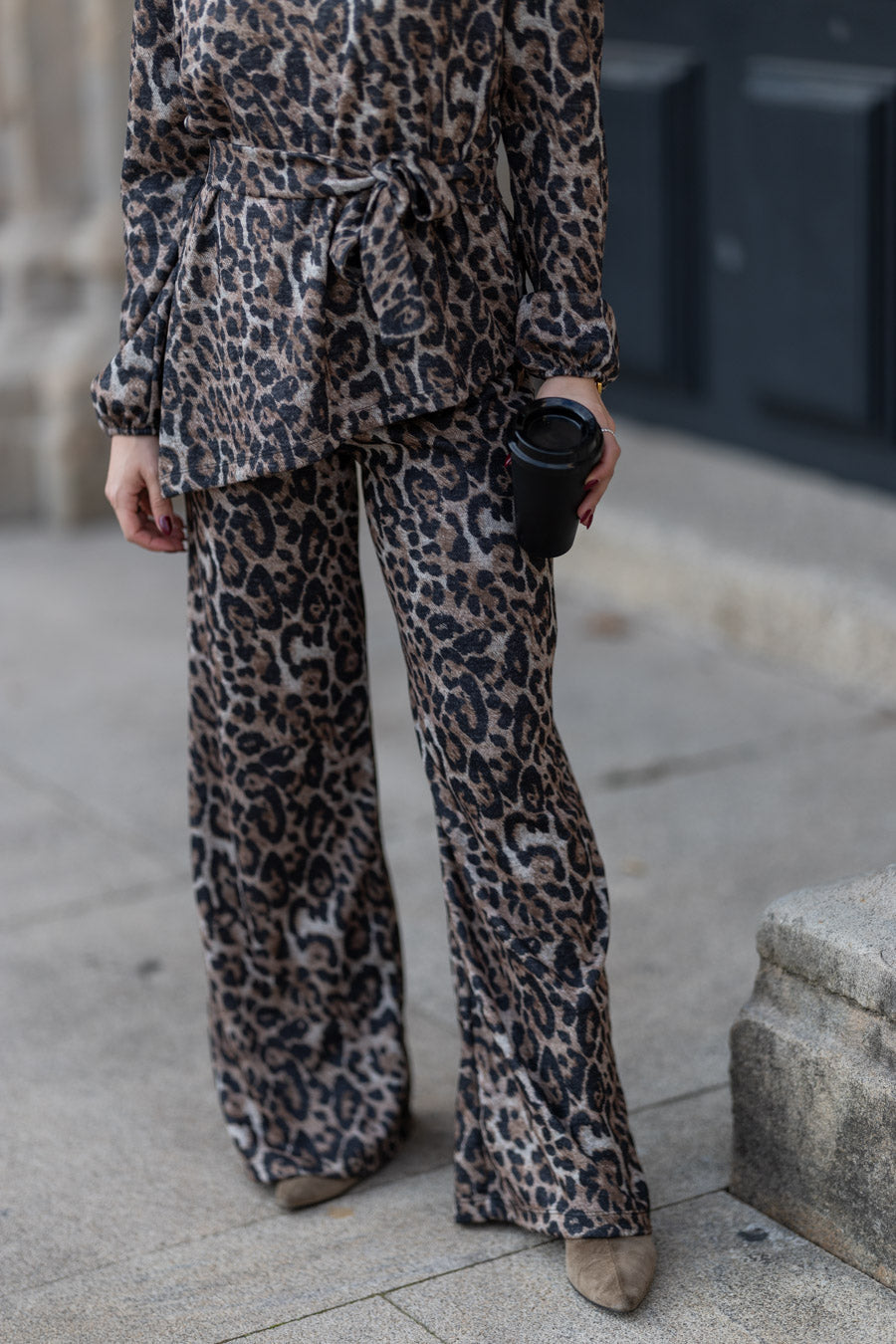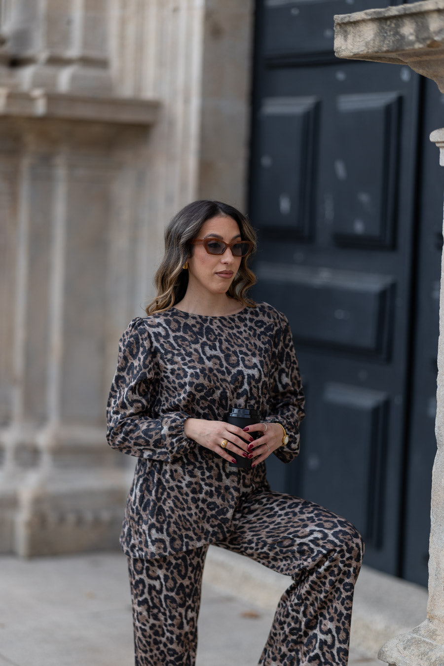 O frio chegou mas isso não é sinónimo de estarmos desleixadas. Criamos o CHIC SET para nestes dias frescos estarmos confortáveis, quentes mas elegantes. Em malha sublimada com estampado leopardo, super quentinha, composto por calças de cintura subida com elástico para fitting perfeito para diferentes corpos. Inclui cinto para looks mais elegantes mas que também pode usar sem se quiser um fitting mais descontraído.