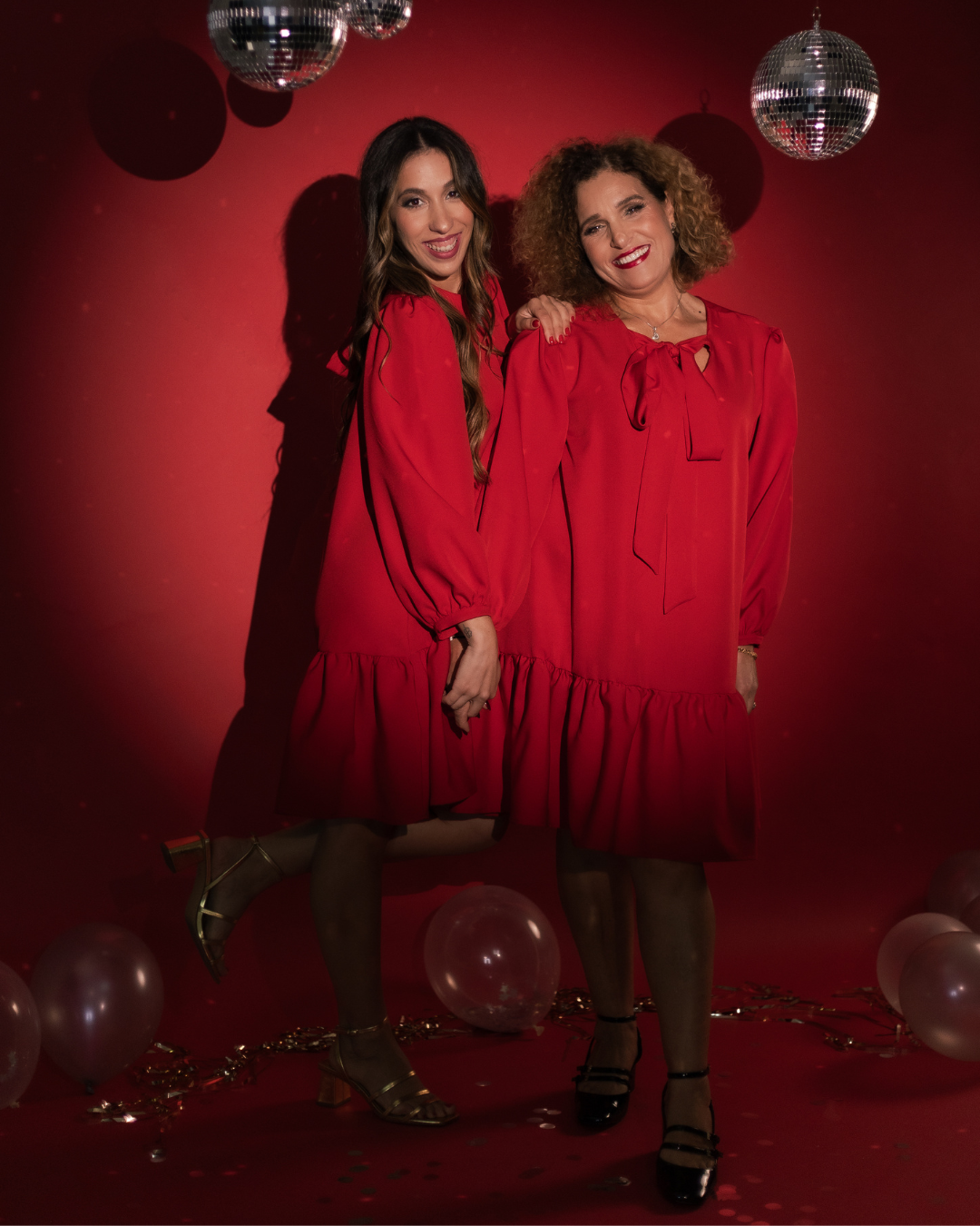 A Bárbara veste o XS/S e mede 1.65 e a Alice veste o ML e mede 1.63