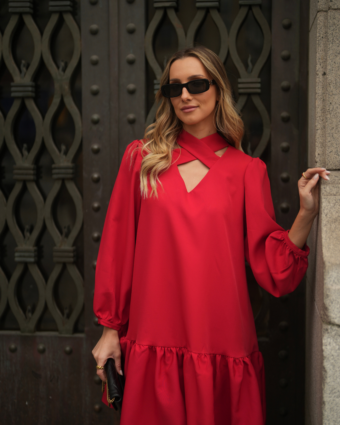 Vestido com abertura em A, inspirado no nosso best-seller Trust Dress da SS23, com decote redondo na frente e decote ligeiro em V nas costas. Na verdade, ele é 4 em 1 e por isso pode utilizar para ambos os lados, alterando o laço. Contém 2 fitas no decote ligeiro em V, para apertar em nó, laço ou cruzado. Pode usar com laço na frente se quiser um look mais romântico ou então nas costas para um look mais casual.